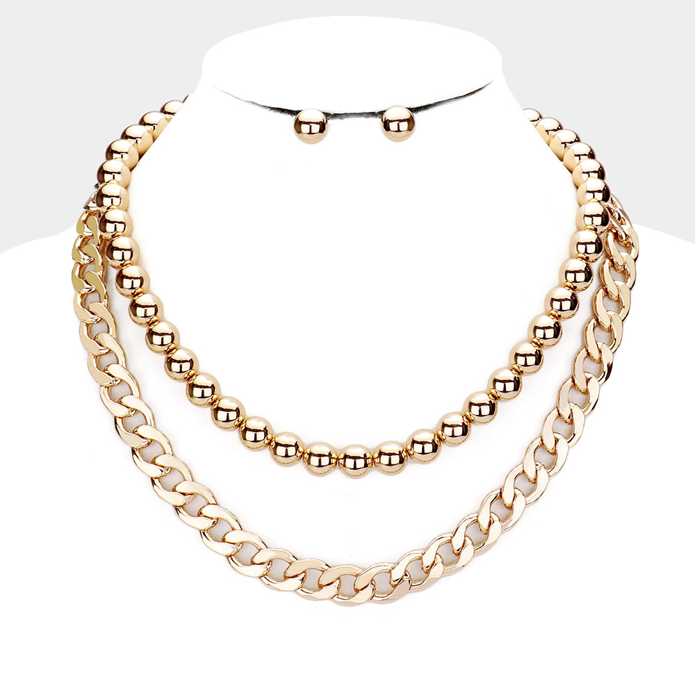 / 2PCS – Metal Ball Chain Necklace Gold