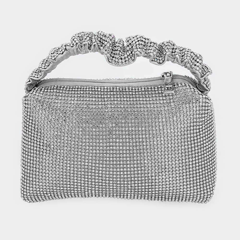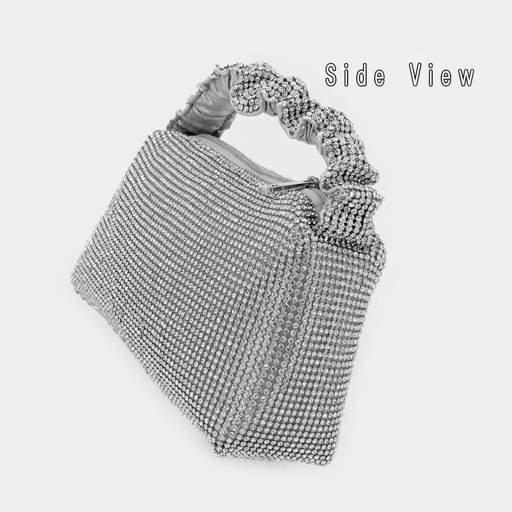 Pleated Handle Detailed Bling Rectangle Evening Tote Bag