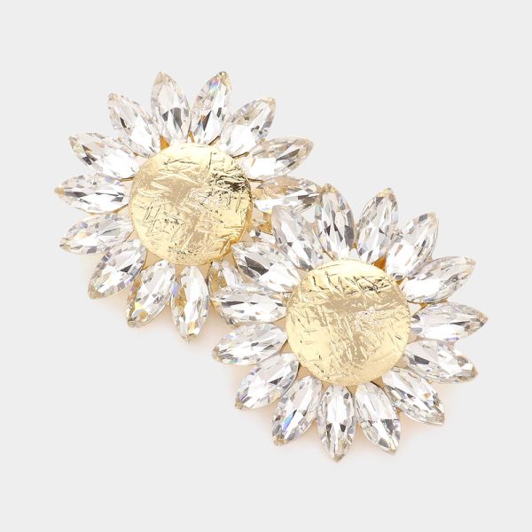 Marquise Stone Trimmed Flower Clip on Evening Earrings