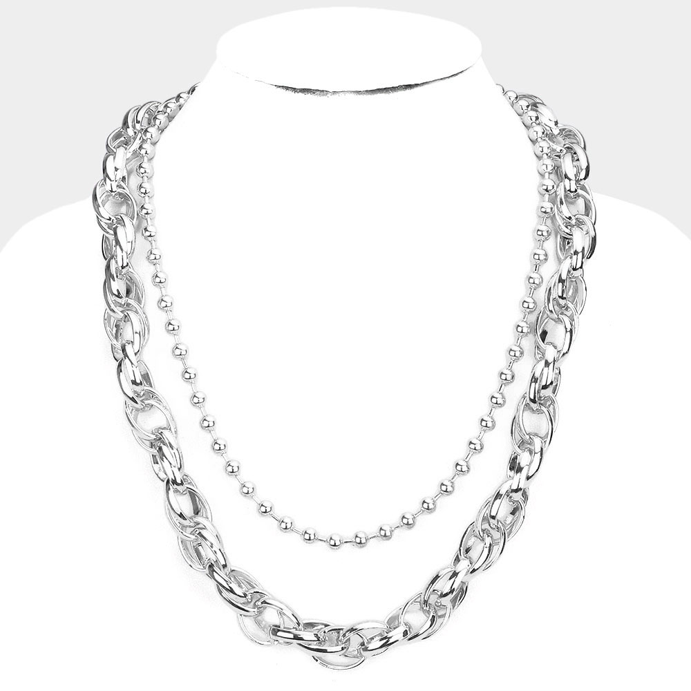 / Double Layered Metal Ball Open Oval Link Bib Necklace