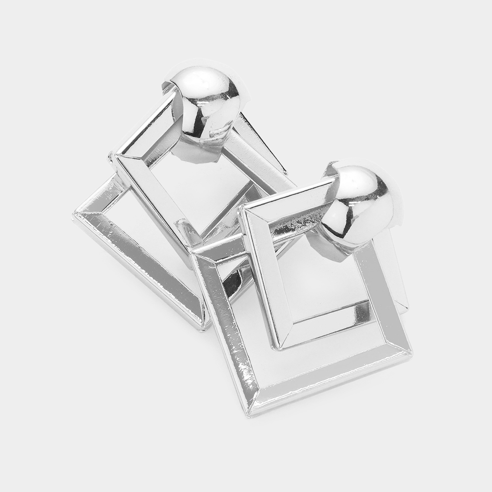 Double Open Metal Square Link Earrings