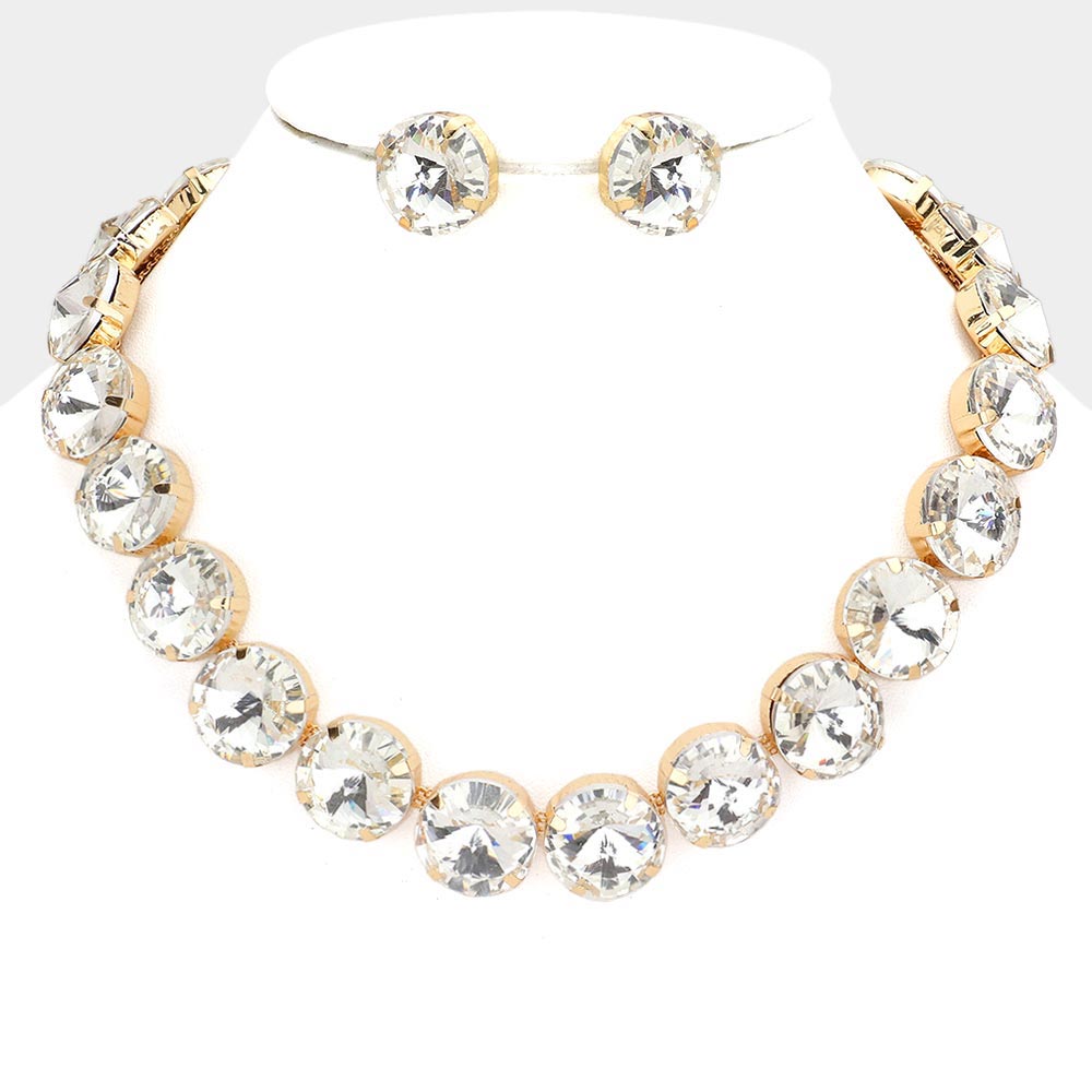 Crystal Rhinestone Trim Teardrop Collar Evening Necklace